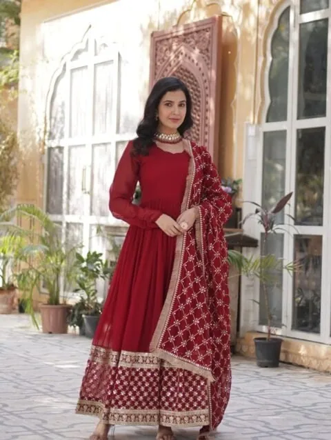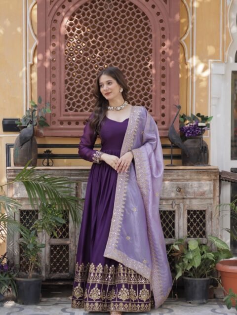 Anarkali Gown Chinon with Rich sequians Embroidered Work