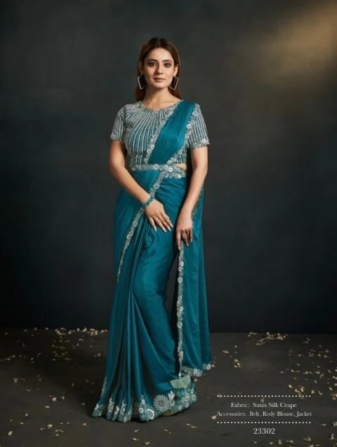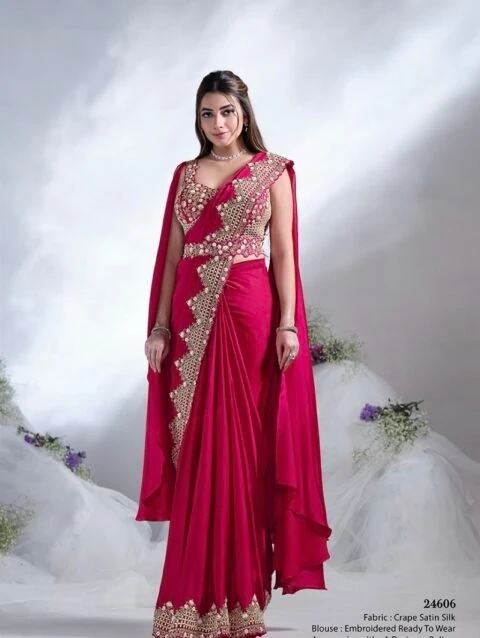 Predrapped Saree Satin Silk Crepe